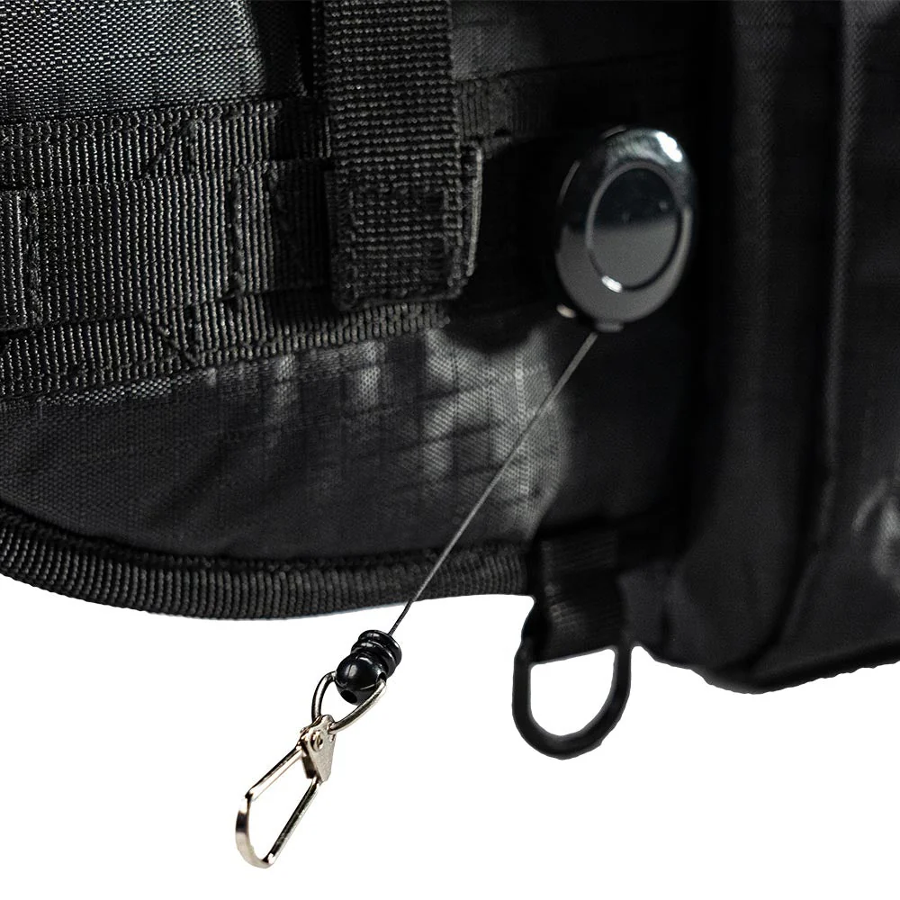 Die LMAB MOVE Hip & Shoulder Bag hat neben den Fächern noch weitere praktische Befestigungsoptionen zu bieten. Am gepolsterten Hüftgurt sind an den Seiten praktische Zangenhalterungen angebracht, so dass man jederzeit schnell auf dieses wichtige Werkzeug zugreifen kann. Doch damit nicht genug. Direkt neben einer der Zangenhalterungen ist ein extrem praktischer Aufroller mit Karabiner befestigt, an welchem Zubehör befestigt werden kann. D-Ringe und ein verstellbarer Gummizug auf dem Deckel ergeben weitere Befestigungsoptionen, wie zum Beispiel für Lanyards am D-Ring oder eine Abhakmatte am Deckel.
